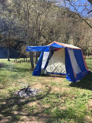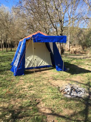 Tienda de campaña marca Dikar Sport. Espaciosa, con dos estancias, caben 4 o 5 personas ampliamente. Tiene sus años asi que tiene algun que otro desperfecto y por su peso y volumen no puedo hacer envios, solo disponible para recogida en Puerto Serrano o la zona de Sevilla.