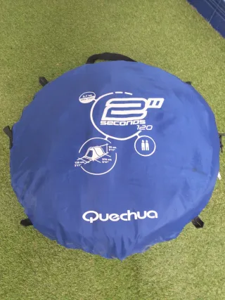 Tienda de campaña Quechua modelo 3 seconds. Fácil de montar y transportar. - Color azul. - Peso: 4,5 kg. - Material: Poliéster con recubrimiento de PU. - Varillas de fibra de vidrio.