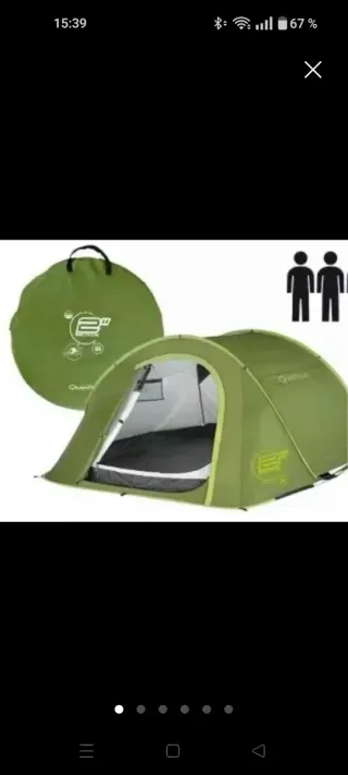 Tienda camping nueva 🩶 2Seconds, para tres personas. Mide 1.85cm ancho x 2.10cm largo x 1.04 cm alto. Super fácil de montar!! Para camping