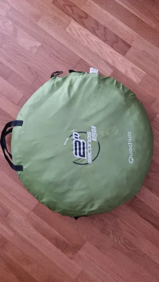 Tienda de campaña hasta 4 personas plegable de la marca Quechua. - Modelo: 2 Seconds Light. - Color: Verde. - Incluye asas para su transporte y como mochila. - Solo se usó 4 veces. Está nueva nueva.
