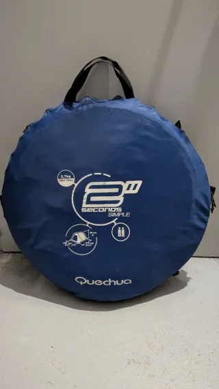 Tienda de campaña Quechua 2 Seconds 2, utilizada una sola vez. Es fácil de montar y transportar. - Color azul y negro. - Capacidad para 2 personas. - Diseño pop-up para montaje rápido.