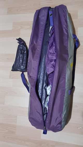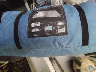 Color azul. 2/3 plazas aprox. Incluye todo lo necesario para montar la tienda como puede verse en las fotos. Poco uso. Medidas paquete: 68x22cm. Peso: 7Kg. Precio no negociable.