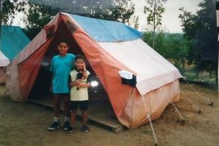 Tienda de campaña tipo iglú, ideal para acampadas. Con poco uso. La verde y gris 15 euros, la azul 20 euros