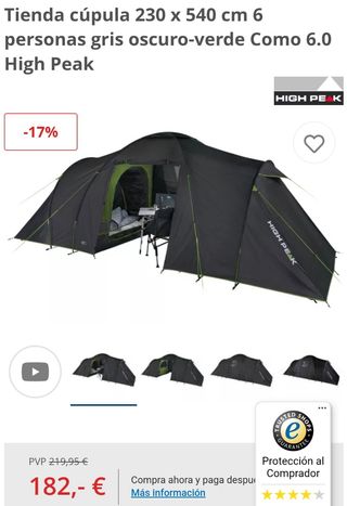Para 4 personas, con mosquiteras. Peso: 10,7 kg (23 lbs 9 oz). En la sala de estar se puede estar de pie puesto que tiene una altura de 1,90 m. En muy buen estado. Se ha usado 3 veces.