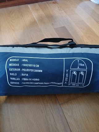 Vendo tienda de campaña para dos personas. Está en muy buen estado, apenas usada. - Ideal para acampar. - Fácil de montar y desmontar. - Ligera y compacta. - Sin estrenar -120x100 - 2 personas de 2m -1.3kg