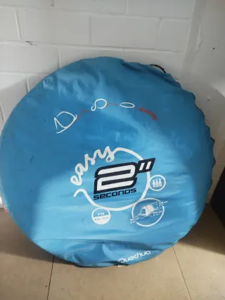 Tienda de campaña azul de la marca Quechua, modelo Easy 2 Seconds. Es compacta y fácil de transportar. - Color azul. - Modelo Easy 2 Seconds. - Peso: 4 kg. - Dimensiones: 180 cm x 110 cm x 240 cm.