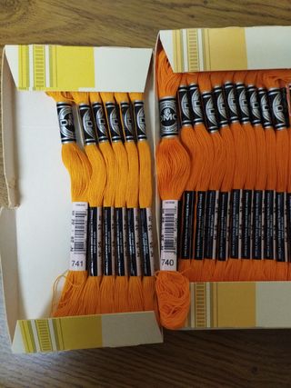 18 madejas hilo trama DMC, grosor 25, tonos naranjas.