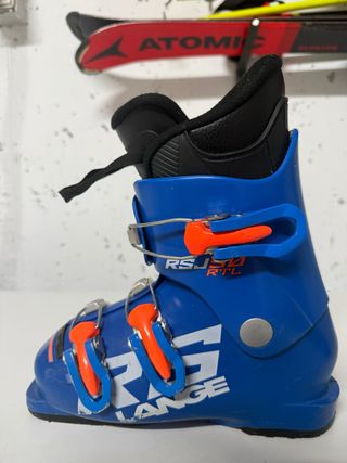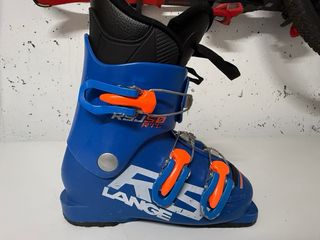 Botas de esquí infantiles de la marca Lange. - Color azul con detalles naranjas. - Cierre con ganchos. - Modelo RSJ 50 RTL.