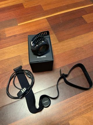 Set de reloj deportivo Suunto y pulsómetro. - Reloj deportivo Suunto. - Correa de pulsómetro. - Módulo de pulsómetro Suunto. El reloj tiene la correa para cambiar. Por lo demas funciona perfcto.