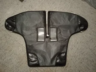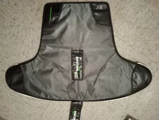 Funda tipo manta para foil de gong. Esta bien escepto una rajita que se ve en las fotos - Diseño en forma de manta. - Cierre de cremallera. - Dos compartimentos transparentes.