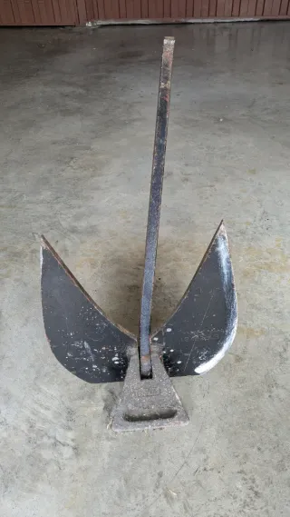Ancla marina de 12kg, ideal para embarcaciones. - Material: Metal resistente. - Color: Negro con detalles en blanco.