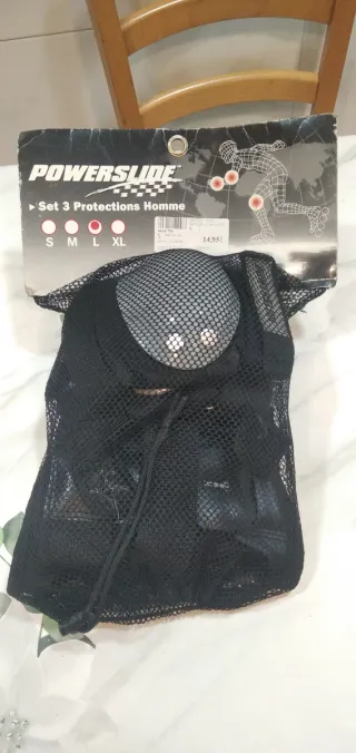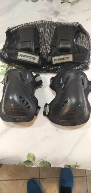 Set de protectores Powerslide para rodillas y codos. Incluye una bolsa de malla para guardarlos. - Protectores de rodilla y codo. - Marca: Powerslide. - Incluye bolsa de malla.