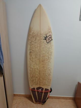 Tabla de surf de 6,2 pies con un diseño clásico y funcional. Tiene algún toque en la parte trasera pero va fenomenal. Se entrega con quillas e invento