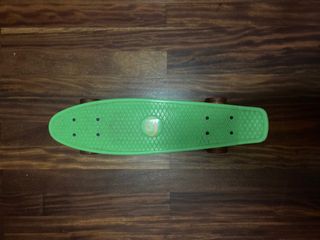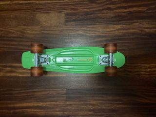 Skate en muy buen estado, ideal para iniciarse en el deporte. - Color verde vibrante. - Ruedas de color ámbar. - Diseño clásico de penny board.