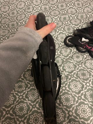 Patinete eléctrico de color negro, ideal para desplazamientos urbanos. Su diseño es moderno y funcional. Tengo otro igual para piezas si quisieras. - Manillar plegable. - Plataforma antideslizante. - Ruedas de goma.