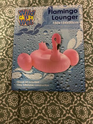 Divertido flotador hinchable con forma de flamenco de la marca Wild n Wet. Perfecto para disfrutar en la piscina o la playa. - Dimensiones: 150x154x95cm. - Incluye kit de reparación. - Construcción inflable fácil de usar.