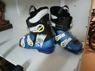 Botas de esquí Salomon T3 para niños, diseñadas para jóvenes esquiadores. Talla 22-22,5. Long.265mm - Color azul y negro. - Cierre con hebillas. - Interior forrado para mayor comodidad.