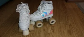 Patines infantiles de color blanco brillante, talla 30. Diseñados para la diversión y el aprendizaje. - Diseño de caña alta. - Detalles iridiscentes en los laterales. - Cierre con cordones.
