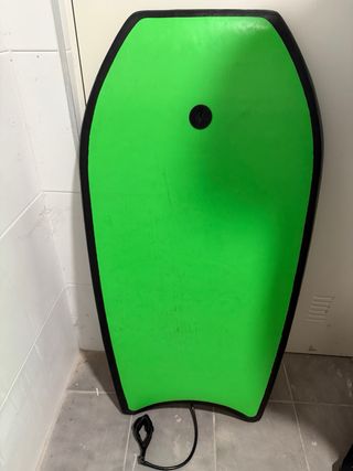 Tabla de bodyboard en color negro, lista para disfrutar del mar. - Material resistente. - Incluye leash (cuerda de sujeción).