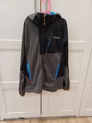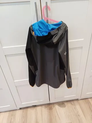 Chaqueta técnica Simond de color gris y negro, ideal para actividades al aire libre. - Diseño con capucha. - Cremalleras de color azul y naranja. - Bolsillos frontales con cremallera.