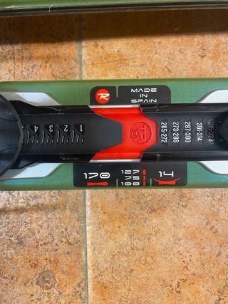 Tiene uno de los frenos cambiado. en las fotos se ve que es algo mas ancho pero no afecta en nada. esquis en muy buen estado, solo necesitan un encerado