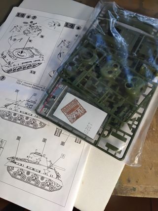 Maqueta de plástico a escala 1/35 del tanque King Tiger. Nueva, grapas en sus bolsas. Incluye calcas para varios esquemas. - Modelo de producción con torreta. - Incluye figura de comandante. - Detalle de orugas flexibles.
