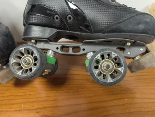 Patins de Hoquei d'alta gama amb estructura de fibra de carboni. Están pràcticament nous. Rodes noves, coixinets nous, pletina nova, tac de frè de goma - Disseny deportiu. - Són molt lleugers - Gairebé sense cap marca de desgast - S'han fet servir 2 mesos