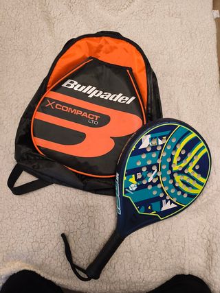 Conjunto de pala de pádel Artengo + palereto Bullpadel naranja fluor. - Pala de pádel con diseño : 20€ - Paletero a juego con logo Bullpadel: 15€