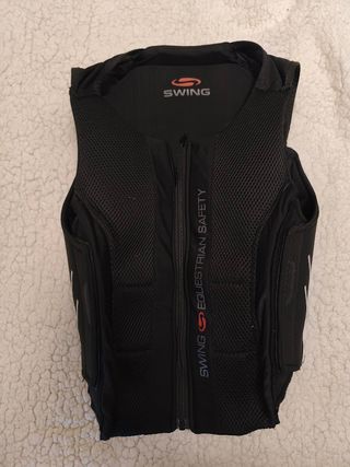 Chaleco de protección para equitación de la marca SWING Talla S Adult - Diseño en color negro. - Cierre frontal con cremallera. - Tejido de malla transpirable. - Protección delantera y trasera - Apto para lavar en la lavadora