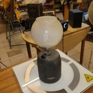 Hornillo de gas para camping, marca Cointra y Jennaer Duran. - Fabricado en Alemania Occidental. - Incluye globo de cristal.