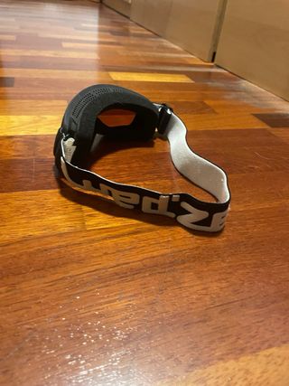Gafas de esquí unisex con lente de doble pantalla. - Montura blanca. - Correa ajustable con detalles en negro. - Lente con tinte marrón.
