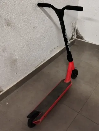 Patinete infantil con un diseño llamativo en color rojo y negro. - Manillar negro. - Base y horquilla en color rojo. - Ruedas negras.