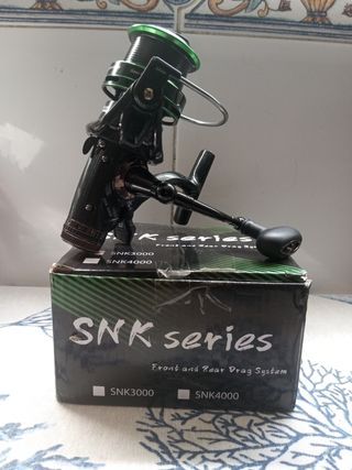 Vendo carrete de pesca SNK Series, está nuevo. Es de acero y de gran calidad - Modelo SNK3000 - Sistema de freno delantero y trasero. - Color negro con detalles verdes. - En su caja original.