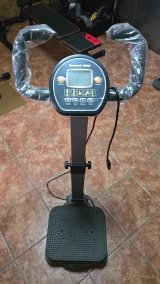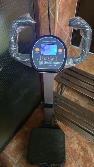 Máquina vibratoria Sensotech Salud con pantalla digital y asas. Esta como nueva y funciona perfectamente. Tiene diferentes modos de vibración e intensidades. También es ajustable en altura y tiene ruedas para poder desplazar la de forma cómoda.