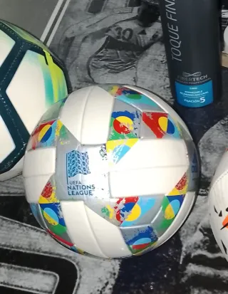Lote de 3 minibalones con diseño de la UEFA Nations League. - Diseño con los colores de la competición. - Ideal para coleccionistas o decoración.