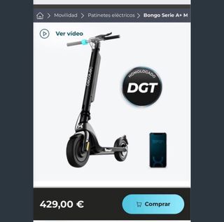 Patinete eléctrico Cecotec Bongo Serie A+ homologado por la DGT. - Color negro. - Diseño plegable. - Ruedas de 8.5 pulgadas. - Incluye recambio de timbre y maneta de freno.