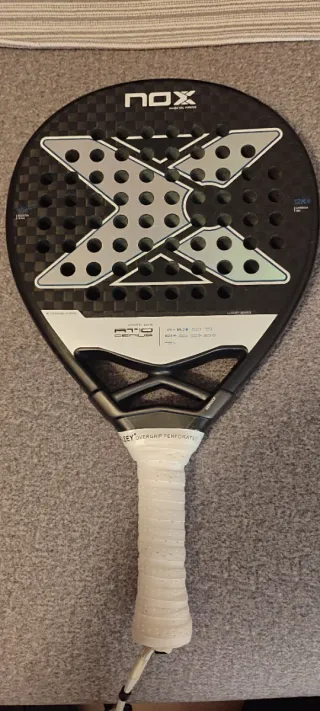 Pala de pádel Nox AT10 12K, diseñada para un juego de alto rendimiento. Su acabado en carbono 12K ofrece una gran durabilidad y potencia. - Pala de pádel Nox AT10. - Acabado en carbono 12K. - Diseño de alta gama. Entrega en mano