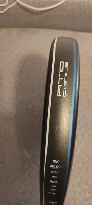 Pala usada para dar clase y jugar algunos partidos. Presenta claros signos de uso: roces, salto de pintura, desgastes en los cantos, pero no tiene ninguna rotura. Se vende por cambio de patrocinio y su peso es de 363 gr. Se puede ver sin problema para comprobar su estado (en Madrid).