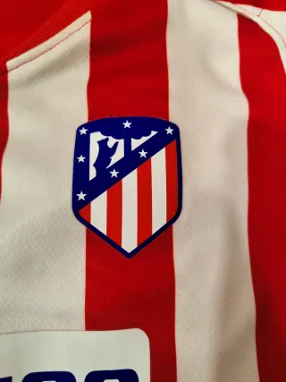 Equipación oficial del Atlético de Madrid nueva,incluye calcetines.Tiene nombre de ALMA bordado atrás.