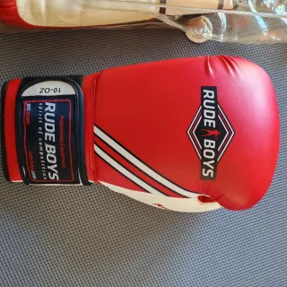 Nuevos a estrenar. Guantes de boxeo de la marca Rude Boys, diseñados para competición. - Color rojo y blanco. - Cierre de velcro. - Logo de Rude Boys. - Tamaño 10 oz.