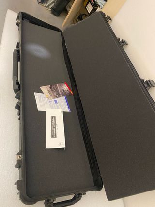 Maleta de la marca Peli, diseñada para rifles. Nunca ha sido utilizada. - Interior con espuma protectora. - Cierres de seguridad. - Asa de transporte resistente.