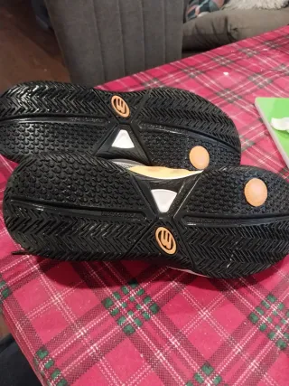 Zapatillas deportivas para pádel o tenis. - Suela de goma negra con buen agarre. - Detalle naranja en la suela. - Diseño deportivo.