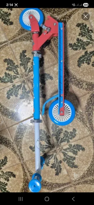 Patinete infantil con diseño de la Patrulla Canina. Es plegable y cuenta con dos ruedas. - Manillar ajustable en altura. - Plataforma con dibujos. - Ruedas de goma.