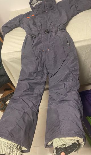 Mono de esquí para niño en color gris, talla 146/158 cm (aproximadamente 12 años). - Buen estado seminuevo. - Marca Decathlon. - Diseño con capucha. - Cinturón ajustable. - Cremallera frontal. - Bolsillos laterales.