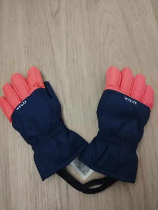 Guantes de esquí Wedze en color azul marino y coral. - Talla 8 años. - Marca: Wedze. - Cierre elástico en la muñeca.