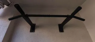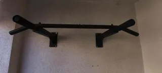 Barra de dominadas negra para montar en la pared. Medidas: largo 92. Fondo 49. Alto 17. Usada dos veces. Está como nueva - Estructura metálica resistente. - Diseño con agarres acolchados.