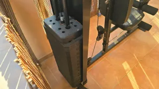 Máquina multifunción para ejercicios. - Estructura metálica. - Poleas y cables incluidos. Máquina seminueva en muy buen estado para hacer todos los grupos musculares piernas espalda pecho bíceps tríceps hombros etc. Comprar en mano, el comprador tendrá que desmontarla y llevársela.
