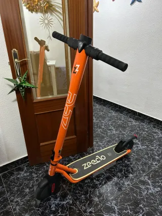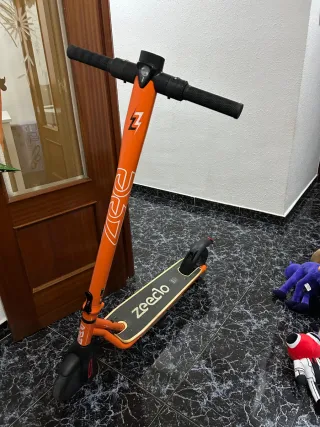 Este patín eléctrico Zeedlo tiene un llamativo color naranja y un diseño moderno. - Manillar con puños negros. - Plataforma negra con logo Zeedlo. - Rueda delantera negra. - Guardabarros trasero negro. Casi sin usar. Prácticamente nuevo.