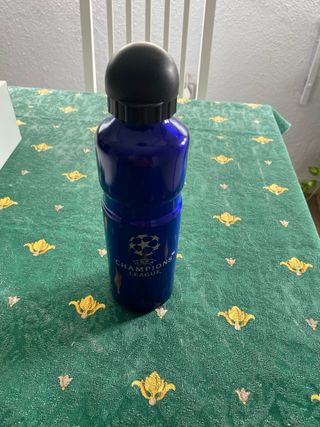 Botella reutilizable de metal con diseño de la Champions League. - Color azul. - Tapa negra. - Logo de la UEFA Champions League.