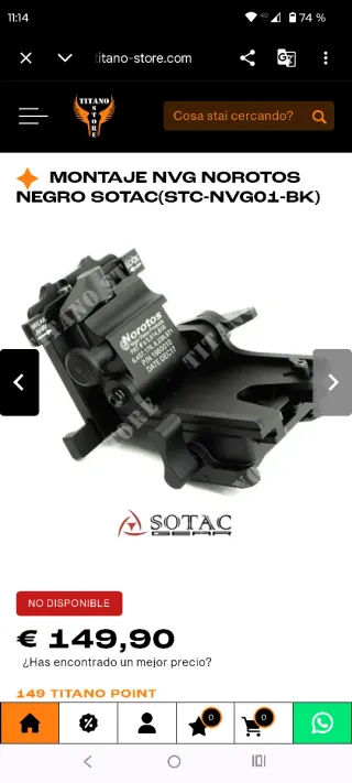 Montaje para NVG de la marca Norotos, modelo Sotac en color negro. - Compatible con airsoft. - Modelo: STC-NVG01-BK. - Patentes: 5,914,816 / 6,457,179 / 8,239,971. - P/N: 1960010. - Fecha de fabricación: DICIEMBRE 2017.
